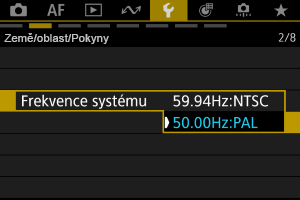 1. Vyberte [Nastavení: Frekvence systému] ().
