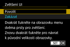 • Při konfiguraci funkcí nabídky se zvětšeným zobrazením používejte ovládání fotoaparátu. Činnost dotykové obrazovky není podporována.