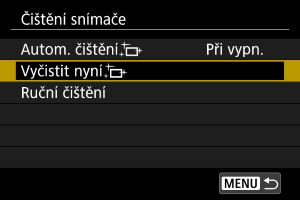 - I když budete čištění snímače opakovat, výsledek se výrazně nezlepší. Upozorňujeme, že ihned po čištění nemusí být funkce [Vyčistit nyní
