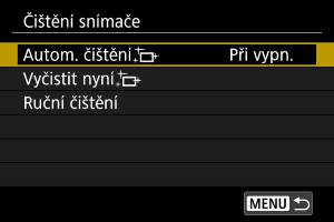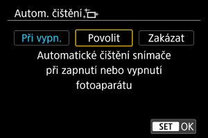 - Při nastavení na [Při vypn.] nebo [Povolit] se snímač vyčistí, když se obrazovka vypne, včetně automatického vypnutí.