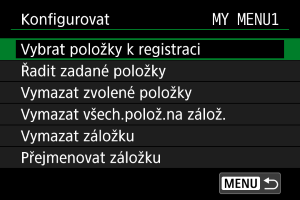 Vyberte možnost [MY MENU*: Konfigurovat].