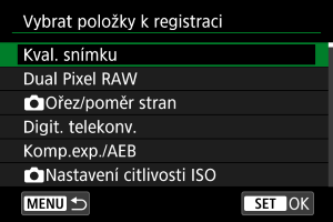 Vyberte možnost [Vybrat položky k registraci].