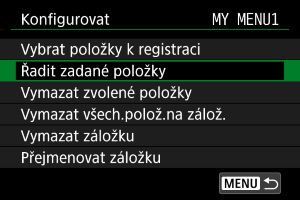 Můžete změnit pořadí uložených položek Moje menu. Vyberte [Řadit zadané položky], vyberte položku, kterou chcete uložit, a stiskněte tlačítko