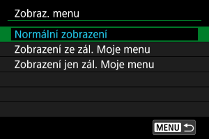 Nastavení zobrazení nabídky