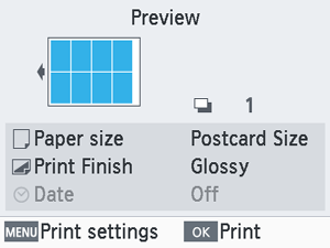Na jeden list formátu L nebo pohlednice lze vytisknout dva obrázky dohromady, každý o velikosti přibližně jedné karty ().