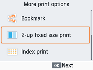 Vyberte možnost [2-up fixed size print/Tisk 2 na stránce ve fixní velikosti] a stiskněte .