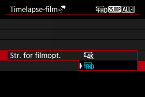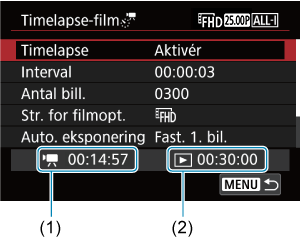 Angiver filmoptagelsestiden (den tid, der er nødvendig for at afspille filmen), når timelapse-filmen i 4K eller Full HD oprettes fra stillbilleder, der er taget med faste intervaller.