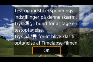 - Det anbefales på forhånd at tage testbilleder som i trin 12 også i forbindelse med optagelse af timelapse-testfilm.