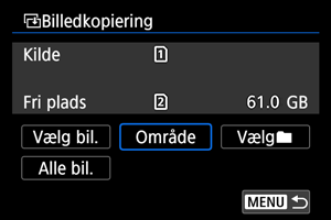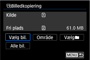 Alle billeder i en mappe eller på et kort kan også kopieres samtidigt.
