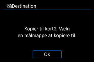Du kan kopiere alle billeder i en mappe eller på et kort samtidigt.