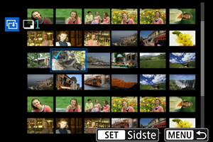 Du kan kopiere alle de angivne billeder på én gang ved at vælge de første og sidste billeder i et område, når du ser på billederne i indeksvisningen.