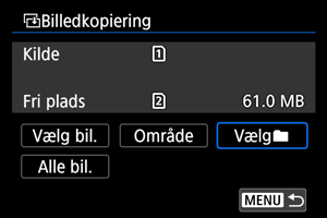 - Med [Vælg bil.] er det ikke muligt at kopiere filer i flere mapper på samme tid. Vælg de billeder, du vil kopiere fra en mappe, ét ad gangen.