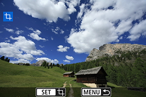 Du kan beskære et optaget JPEG-billede og gemme det som et andet billede. Beskæring er til rådighed for JPEG- eller HEIF-billeder. RAW-billeder og billedekstraktioner fra 4K-film, kan ikke beskæres.