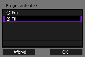 Vælg godkendelsesmetoden.