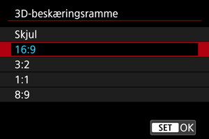 3D-beskæringsramme på filmoptagelsesskærmen (under standby og optagelse) for at se den endelige synsvinkel efter redigering.