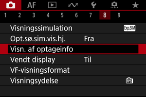 Du kan brugerdefinere de oplysninger og oplysningsskærme, der vises på skærmen eller i søgeren, når du optager.