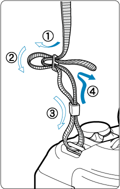 Før den ene ende af remmen gennem remholderen fra bunden, og før den derefter igennem remspændet, sådan som det er vist. Træk i remmen for at stramme den, og sørg for, at remmen ikke går løs af spændet.