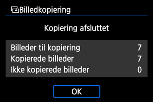 - Resultaterne vises, når kopieringen er afsluttet. Vælg [OK] for at vende tilbage til skærmen i trin 2.