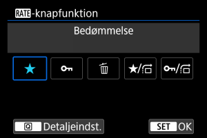 Du kan tildele billedbedømmelse/-beskyttelse/-sletning eller gennemse bedømte eller beskyttede billeder til knappen .