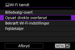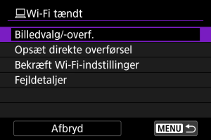 - Visse menupunkter er ikke tilgængelige under billedoverførsel.