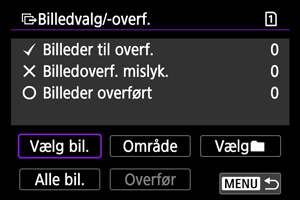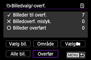 - Hvis du vælger [Vælg ikke-overførte billeder], vælges alle de billeder på det kort, der ikke er sendt.