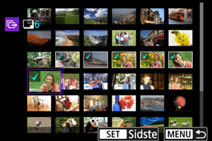 - Du kan se andre indstillinger end [Vælg bil.] under Valg af flere billeder.