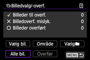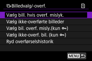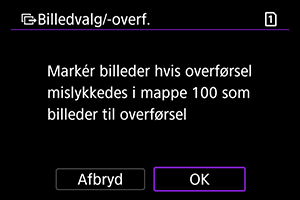 - Hvis du vælger [Vælg bill. hvis overf. mislyk.], vælges alle billeder i den valgte mappe, for hvilke overførsel mislykkedes.