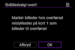- Hvis du vælger [Vælg bill. hvis overf. mislyk.], vælges alle billeder på det kort, for hvilke overførsel mislykkedes.