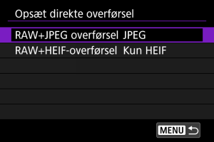 For RAW+JPEG- eller RAW+HEIF images-billeder kan du angive, hvilket billede du vil overføre.