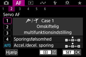 Optagelse med Servo AF nemt tilpasses til dine motiver eller optagelser ved at vælge en Case *-indstilling. Denne funktion kaldes “AF-konfigurationsværktøj”.