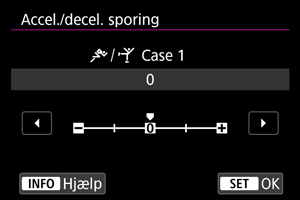 Du kan manuelt justere parametrene ((1) Sporingsfølsomhed og (2) Accelerations-/decelerationssporing) for Case 1 til Case 4.