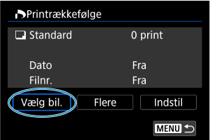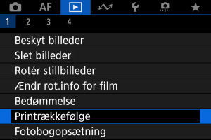 - RAW/HEIF-billeder og film kan ikke angives til printing. Bemærk, at RAW/HEIF-billeder og film ikke angives til printing, selv hvis du angiver alle billederne med [Flere].