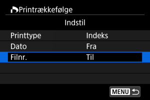- Med [Indeks]-print kan [Dato] og [Filnr.] ikke begge være indstillet til [Til] samtidigt.