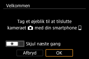 Instruktioner i at oprette forbindelse til en smartphone vises, hvis du vælger [OK], når opsætningsskærmen vises ().