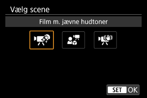 Når du vælger en optagelsesmetode i henhold til motivet og scenen, indstilles automatisk de funktioner, der er egnede til optagelse.