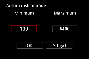 - Når [AUTO] er valgt, indstilles ISO-hastigheden automatisk.