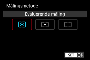 Der findes metoder til at måle motivets lysstyrke (målingsmetoder). Normalt anbefales evaluerende måling. Evaluerende måling indstilles automatisk i programmer i Basiszone (undtagen i :
