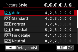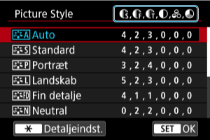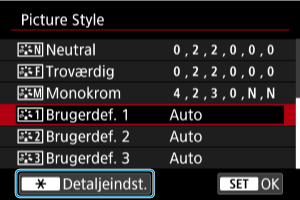 - Standard-Picture Style vises til højre for [Brugerdef. *].