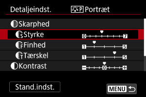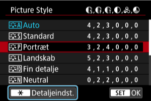 - Hvis du vælger [Stand.indst.] i trin 3, kan du gendanne parameterindstillinger for den respektive Picture Style til dens standardindstillinger.