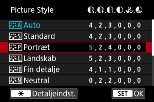- Du kan finde flere oplysninger under Picture Style-tilpasning.