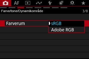 - Vælg [sRGB] eller [Adobe RGB], og tryk derefter på