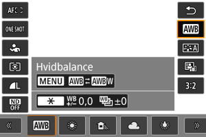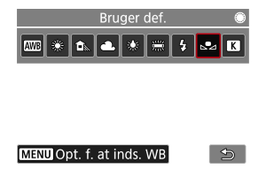 Hvidbalance (WB) er beregnet til at få hvide områder til at se hvide ud. Normalt kan indstillingen Auto [] (Stemningsprioritet) eller [