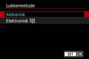 Du kan vælge metoden til udløsning af lukker.