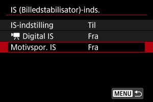 Aktiverer billedstabilisering ved hjælp af den elektroniske IS-funktion.