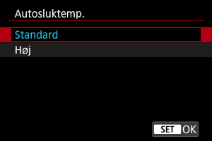 : Autosluktemp.] er indstillet til [Høj].