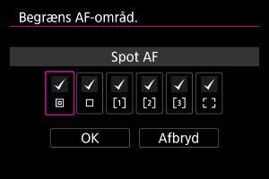 Du kan nu begrænse de valgbare AF-områder. Du kan finde flere oplysninger om AF-områder under AF-område.