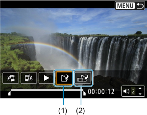 Vælg [] (2) for at gemme en komprimeret version af filen. 4K-film konverteres til Full HD-film før komprimering.