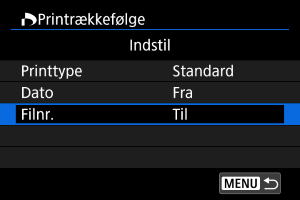 - Med [Indeks]-print kan [Dato] og [Filnr.] ikke begge være indstillet til [Til] samtidigt.