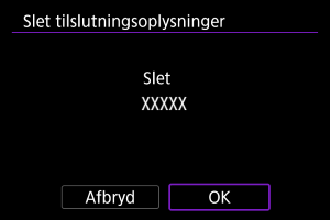 Du kan slette forbindelsesoplysningerne. Parringsoplysninger for alle tilsluttede BR-E1-enheder slettes.