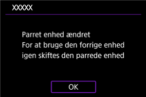 - Der vises en meddelelse, hvis videokameraet allerede er parret med en anden enhed. Vælg [OK] for at afslutte den aktuelle Bluetooth-forbindelse.